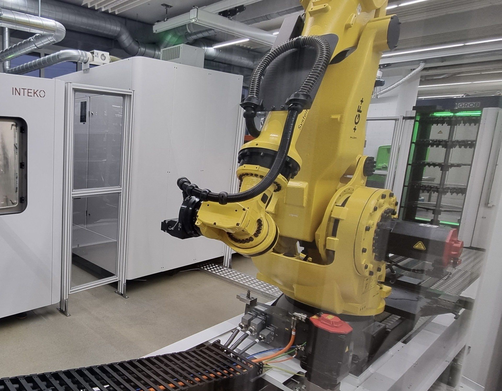 Unsere Roboter unterstützen Sie in der Fertigung. Sie beladen und entladen montieren und palettieren.